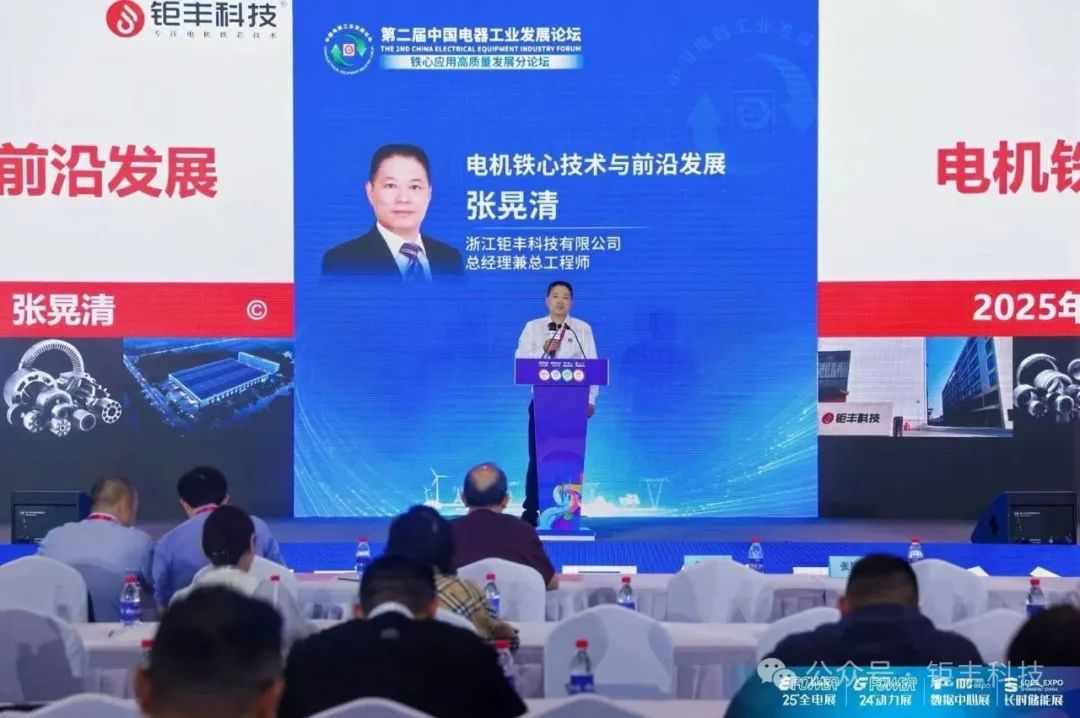Zhang Huangqing, generální ředitel a hlavní inženýr společnosti Zhejiang Jufeng Technology Co., Ltd., byl pozván k účasti na zprávě nazvané „Technologie motorového železa a hraniční vývoj“. Na základě neustálého zvyšování poptávky na trhu hluboce analyzoval technickou cestu Iron Core, aby splnil požadavky na výkon a náklady. Jeho hluboké znalosti technologie výroby železných jader a jeho nejnovější výsledky výzkumu v oblasti výroby železných jader byly účastníky vysoce hodnoceny. Jako platforma pro šlechtění a shromažďování elit v oboru a profesionálních talentů podporuje Jufeng Technology neustálý pokrok a modernizaci průmyslové technologie. Jufeng Technology bude i nadále přispívat zákazníkům, průmyslovým odvětvím a společnosti.