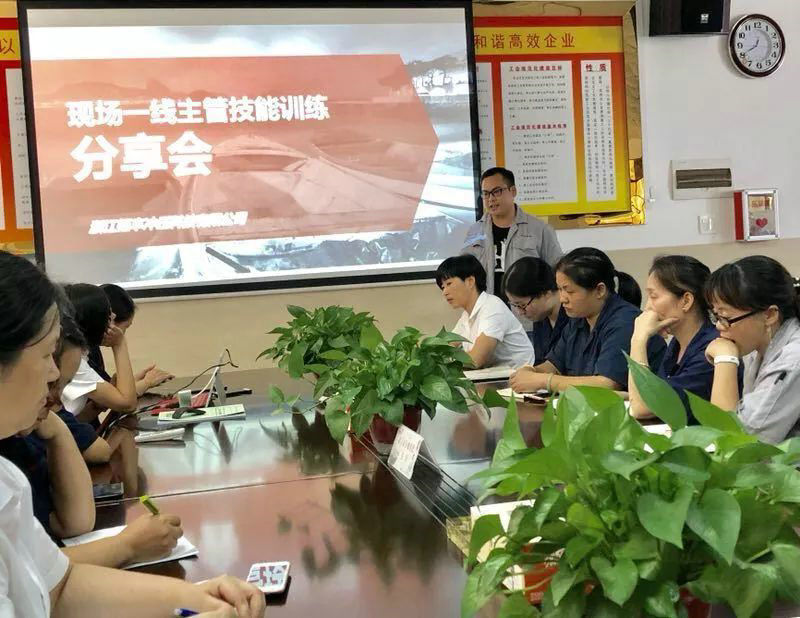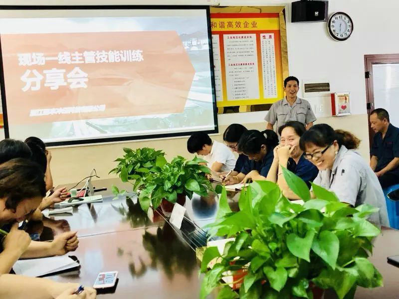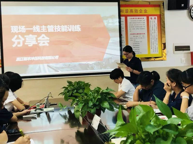 Dne 22. září 2018 společnost zorganizovala 38 manažerských zaměstnanců k účasti na on-line školení dovedností supervizorů pořádané Yuyao Jianfeng Enterprise Management Group. Dne 30. září se zástupci jednotlivých oddělení workshopů podělili o skvělé informace z různých úhlů pohledu na obsah školení a vlastní práci, aby každý hlouběji porozuměl znalostem předávaným učitelem.
