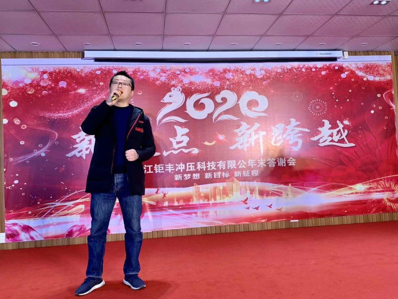 Když se ohlédneme za rokem 2019, jsme plni hrdosti; těšíme se na rok 2020, máme na svých bedrech těžké povinnosti. S tvrdou prací rodiny Jufeng po dobu jednoho roku dosáhl Jufeng žádoucích výsledků. Dnes je den, kdy se můžeme těšit z poct a plodných výsledků. Dne 5. ledna 2020 bude slavnostně zahájena výroční schůze Jufeng. Projev předsedy Qiu: Předseda Qiu zhodnotil výkon v roce 2019, předložil nové pracovní body pro rok 2020 a snažil se vybudovat z Jufenga odpovědnou automobilku s žádoucími produkty a dobrými službami. Věřím, že rodina Jifeng půjde pevnými kroky vpřed pod vedením Qiu Dong, hlavy rodiny.